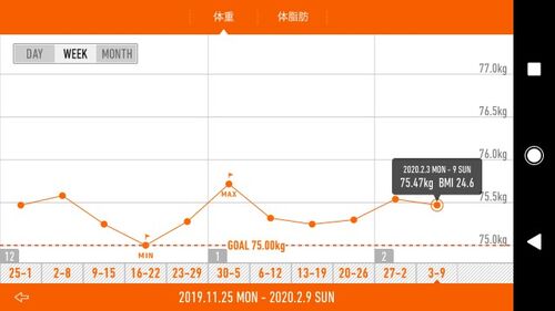 こんばんは。 アキぼっち、です。 いつも日曜日の朝に書いているダイエット記録ですが、今週はマラソン大会でバタバタしていて書けなかったので今日になりました それでは先週一週間の体重平均値は以下の通り。 平均値で75.47キロ。計測は朝起きてから30分程…