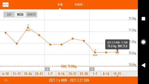 こんばんは。 アキぼっち、です。 3月も折り返し、気温も暖かくなり過ごしやすい時期になってきました。 花粉症は相変わらずですが それでは先週一週間の体重平均値は以下の通り。 平均値で70.61キロ。計測は朝起きてから30分程経ってから。 先週から+0.01…